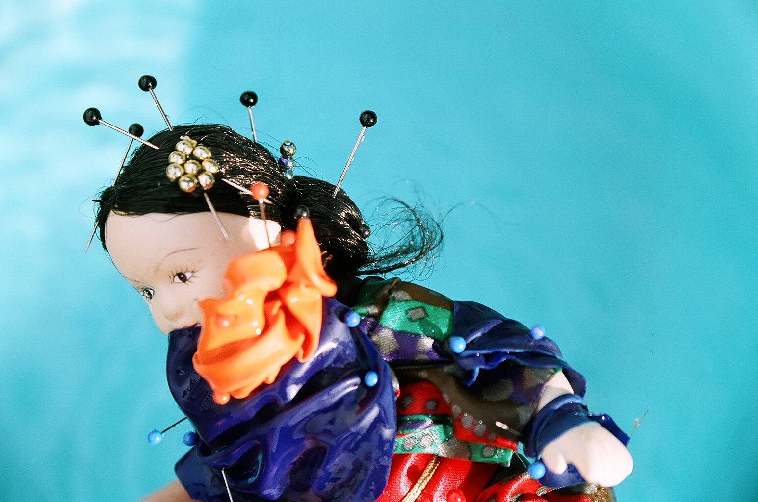 L’artista da anni si ispira all’iconografia della bambola per realizzare sculture kitsch in cui le bambole di plastica, ceramica o altri materiali sono celate da pezzi di stoffa, fasciate e compresse in gomme in lattice colorato e poi trafitte con spilli di acciaio e plastica, per suggerire una nuova configurazione della corporeità femminile.