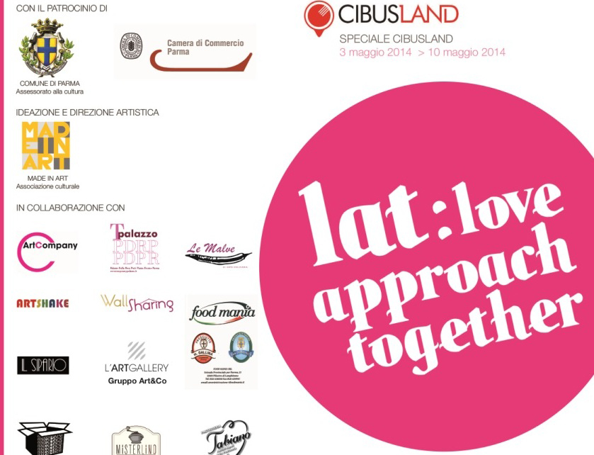 LAT – Love approach together è un format di evento spontaneo e solidale organizzato dall’associazione culturale Made in Art per invitare varie realtà private e associative locali a riflettere sul rapporto tra arte e cibo. Realizzato con il Patrocinio del Comune di Parma, della Camera di Commercio di Parma e dedicato a CibusLand, LAT si propone come una piattaforma in cui arte contemporanea e scambio culinario diventano strumento di intervento su un territorio di eccellenza alimentare. Il progetto mira ad innescare nuove forme di coesione e vitalità, una trasformazione sociale responsabile e quindi nuovi intrecci di relazioni urbane. LAT nasce senza gerarchie e intende sensibilizzare i cittadini sui vantaggi della convivenza e della collaborazione coinvolgendoli in un dialogo aperto su temi che uniscono e accomunano, come il cibo e l’arte. LAT è anche laboratorio di idee che promuove una partecipazione culturale attiva puntando su dinamiche del vivere collettivo, oggi da salvaguardare: conoscenza, condivisione, sostenibilità, scambio e ascolto sono il punto di partenza per la valorizzazione delle diversità. La convivialità è alla base delle iniziative realizzate da LAT, tra cui laboratori didattici, progetti espositivi, focus sulle produzioni, conferenze.