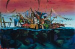 Nelle sue opere il naufragio del vascello, la sparizione del bastimento e la sostituzione della zattera nei vessilli bicolore, nei festoni variopinti e nei suoi elementi portanti si trasforma in un fluttuante accumulo di immagini apparentemente solari e cariche in superficie, ma che in sostanza presagiscono a una nuova iconoclastia.