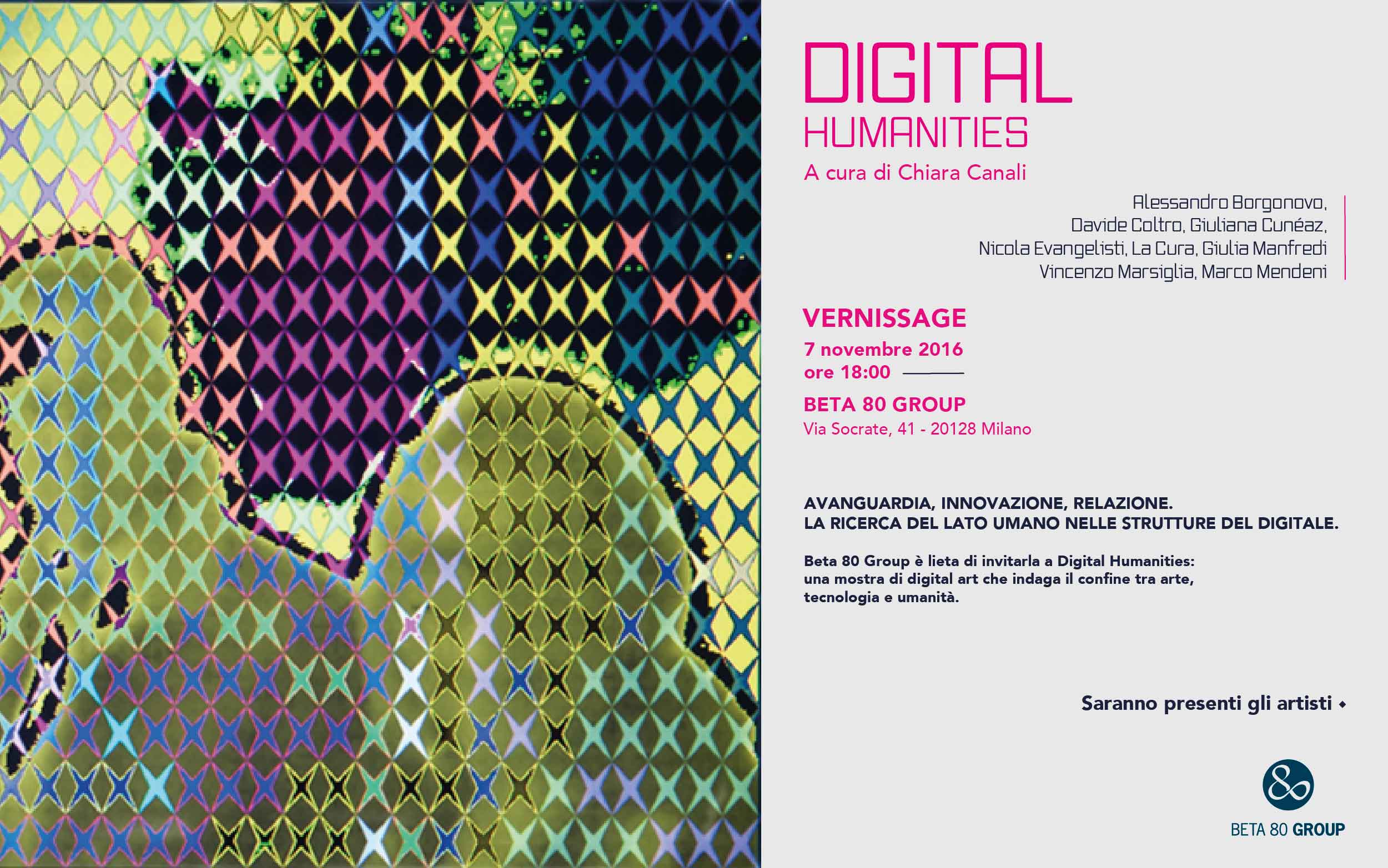 Beta 80 Group è lieta di invitarla a Digital Humanities: una mostra di Digital Art, a cura di Chiara Canali, che indaga il confine tra arte, tecnologia e umanità.