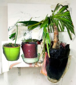 QUASI UN DITTICO – VASO NERO tecnica mista collage su tavola 2010 1350X1500X350 mm
