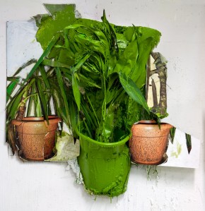 QUASI UN DITTICO – VASO VERDE tecnica mista collage su tavola 2010 140X140X55 cm