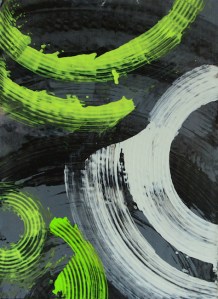 Studente Riccardo Viganò, Fluo Circles, 2017, acrilico su cartone, polittico, 21×15 cm-