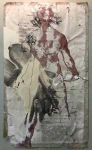 il sessantanovesimo giorno, 2016 (dal ciclo Incompleteness) disegno a matita,pennarello,acetato,nastro adesivo,stampa su carta lasciata all’esterno per 69 giorni, 66,5×39