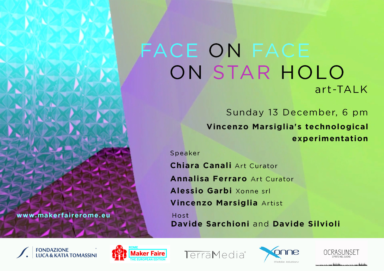 La Fondazione LKT partecipa a Maker Art con il progetto dell’artista Vincenzo Marsiglia “FACE ON FACE ON STAR HOLO“, a cura di Davide Sarchioni e Davide Silvioli, suddiviso in due momenti distinti ma complementari: Holo Private Immersion e Interactive Star App.