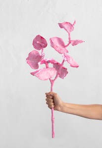 PINK FLOWER, plant, resin, volcanic sand, watercolor, 30X64X20 cm, 2020