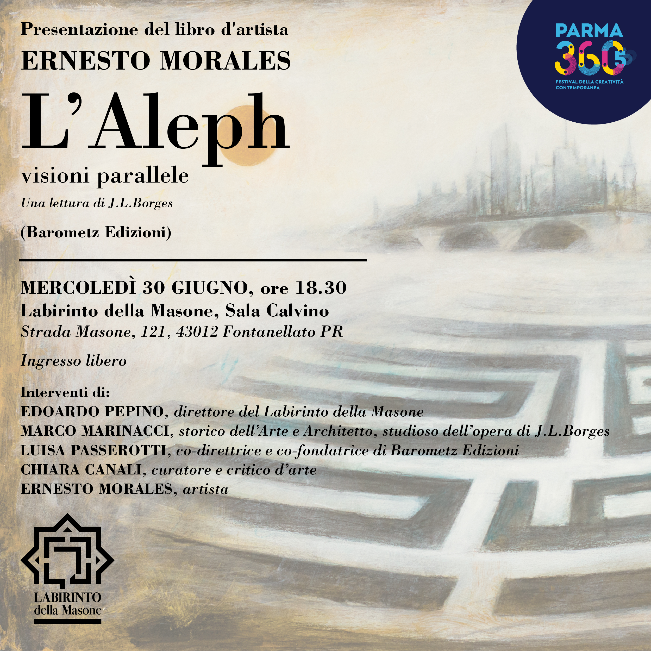 04 crea invito digitale Morales Pubblicato 28 giugno 2021 su 2500 × 2500 in Presentazione del libro d’artista di ERNESTO MORALES, L’Aleph presso il Labirinto della Masone ← Precedente Successivo → Condividi: Condividi su Facebook (Si apre in una nuova finestra) Facebook Condividi su X (Si apre in una nuova finestra) X Share on LinkedIn (Si apre in una nuova finestra) LinkedIn Condividi su WhatsApp (Si apre in una nuova finestra) WhatsApp Altro Email a link to a friend (Si apre in una nuova finestra) E-mail Stampa (Si apre in una nuova finestra) Stampa Mi piace Caricamento...