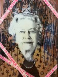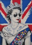 Tra queste, una grande tela di Endless, artista londinese che coniuga arte contemporanea e arte di strada. La Regina risplende in una scultura luminosa di Marco Lodola, tra i cui soggetti ricorrono spesso icone mondiali, da Marilyn Monroe a Mao Tse-tung. Seguono tre ritratti ironici e irreverenti di Sua Maestà firmati da Mr. Brainwash, allo stato Thierry Guetta, artista francese noto al grande pubblico per il celebre film “Exit Through the Gift shop” diretto da Banksy, che da oltre vent’anni veicola attraverso pop e street art messaggi di amore e di libertà. Segue “God Save The Queen” di Luigi Maria Muratore, aka Raptuz, classe 1968, tra i pioneri del writing italiano e fondatore, assieme a J Ax, della storica Spaghetti Funk. Jamie Reid (Londra, 1947) è un artista britannico, noto soprattutto per aver curato l’immagine punk dei Sex Pistols. Alcune delle litografie in mostra sono basate su una famosa fotografia scattata da Cecil Beaton alla regina Elisabetta II. TVboy, infine, rappresenta la Regina in abiti punk. Alle sue spalle è riprodotta con graffiti e colature di colore la bandiera del Regno Unito, mentre sulla sua maglietta compare la scritta “Punk’s not dead”.