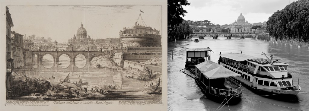 Il visitatore potrà ammirare alcuni dei luoghi più simbolici della città eterna rappresentati dalle stampe originali calcografiche realizzate nel ’700 dall’incisore veneziano e dalle altrettante vedute di Roma del fotografo milanese, realizzate con le stesse angolazioni delle incisioni piranesiane.