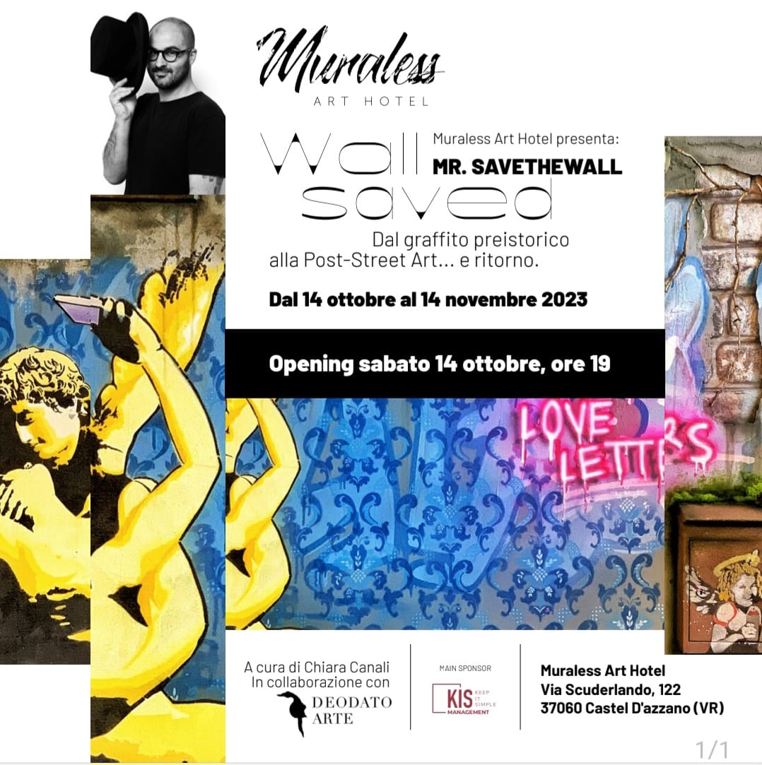 Artista irriverente e anticonvenzionale ormai acclamato dal pubblico e dalla critica, Mr. Savethewall (rappresentato in esclusiva dalla galleria Deodato Arte di Milano, che è anche partner ufficiale della mostra) ritorna al Muraless Art Hotel di Castel d’Azzano, alle porte di Verona, dopo aver realizzato una delle sue camere di maggior successo, quella dedicata ad Antonio Canova, nella struttura ricettiva che è di fatto un museo dedicato all’arte urbana e ai suoi protagonisti, una galleria da vivere ad ogni soggiorno.