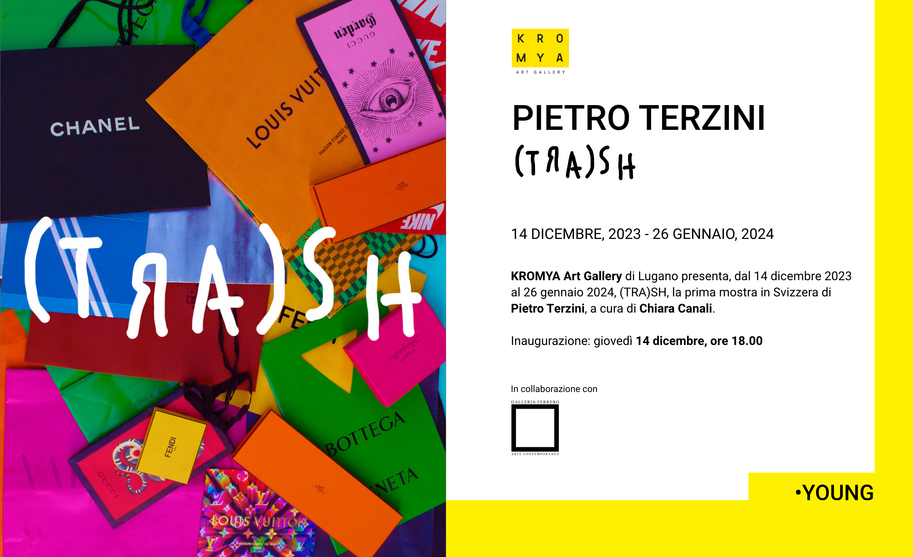 KROMYA Art Gallery di Lugano presenta, dal 14 dicembre 2023 al 26 gennaio 2024, (TRA)SH, la prima mostra in Svizzera di Pietro Terzini, a cura di Chiara Canali.