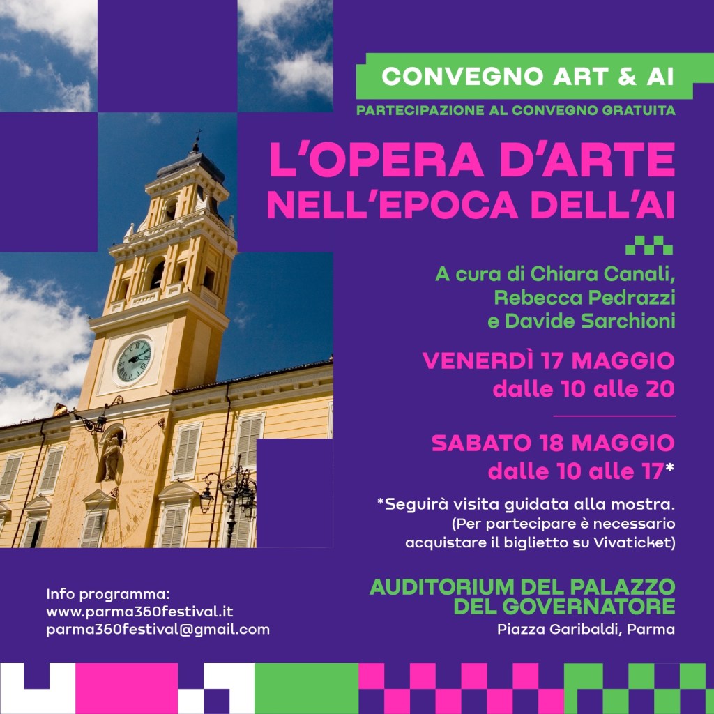 Il Convegno si terrà in presenza, a ingresso libero, a Parma il 17 e 18 Maggio ed ospiterà artisti, curatori e professionisti per approfondire il dialogo e la riflessione intorno alle complesse connessioni tra arte, creatività e Intelligenza Artificiale, cercando di analizzare dinamiche e implicazioni presenti e future dell’utilizzo delle AI sia in ambito creativo che nei settori più propriamente imprenditoriali, in riferimento anche ai temi dell’etica, della proprietà intellettuale e del diritto d’autore.