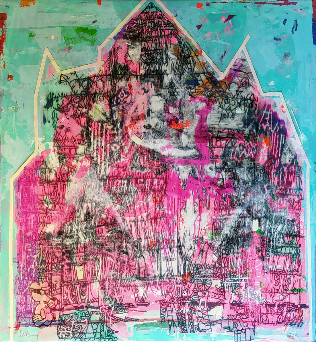Da sempre affascinato dai disegni, dai messaggi e dai simboli ricorrenti sui muri delle città, Maranghi negli ultimi anni ha ricorsivamente fotografato tutto quanto attira la sua attenzione, dai murales degli street artists alle testimonianze grafiche ed espressive più disparate, facendole confluire, poi, all’interno della propria produzione pittorica. Queste immagini, che costituiscono il repertorio di un “artista vandalo”, sono declinate in opere quadrate di piccolo formato, costituite da una texture stratificata di forme, linee, graffi, decori.