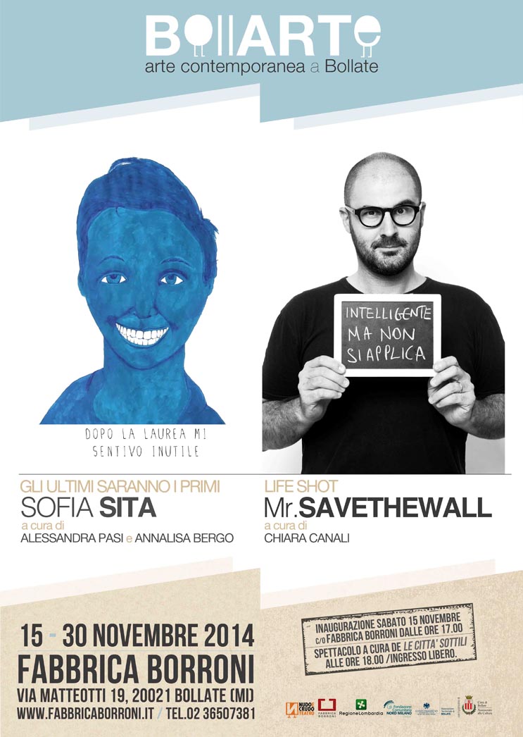 Fabbrica Borroni e nudoecrudo teatro, che da sempre lavorano in questa direzione, presentano gli interventi artistici di Sofia Sita, illustratrice e pittrice ferrarese, menzione speciale del bando Up_Nea’14, e Mr. Savethewall, artista comasco che realizza “idee” con differenti tecniche e forme espressive.