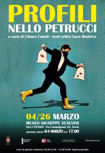 Al Museo Giuseppe Scalvini di Villa Tittoni di Desio (diretto da Cristiano Plicato) è in mostra una selezione di opere pittoriche a collage e décollages che presentano una sovrapposizione e stratificazione di frammenti di affiches e manifesti ritrovati per strada, oltre che di pubblicità, poster e altri segni della comunicazione di massa. Questo sfondo vivace ed elettrizzante, quanto le luci e le insegne della città di New York che Petrucci ha scelto quale sua seconda città elettiva, costituisce il background sul quale si susseguono le opere dedicate ai profili dello Star System: attori (da Marcello Mastroianni a Raffaele Viviani), registi (da Sergio Leone a Francis Ford Coppola), musicisti (Tom Waits) attraverso cui Nello ci racconta la sua fascinazione verso le locandine cinematografiche e la sua seduzione nei confronti del mondo della celluloide.