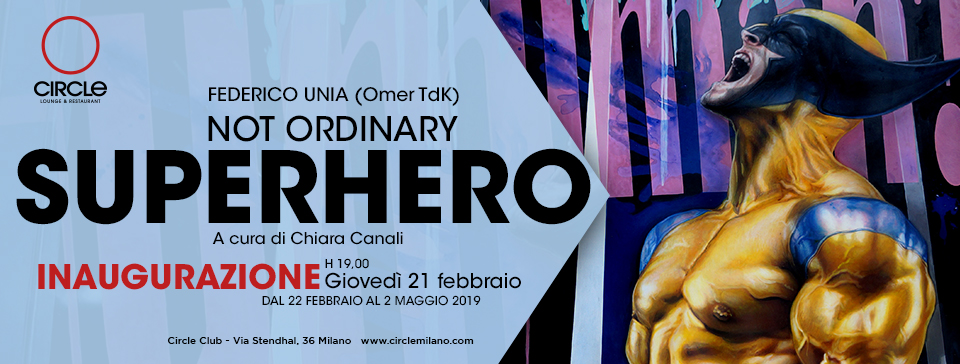 Circle di Milano è lieto di presentare nei propri spazi la seconda personale dell’artista Federico Unia, alias OmerTDk, intitolata Not Ordinary Superhero, a cura di Chiara Canali, dopo la prima personale D’Arte sogni del 2012.